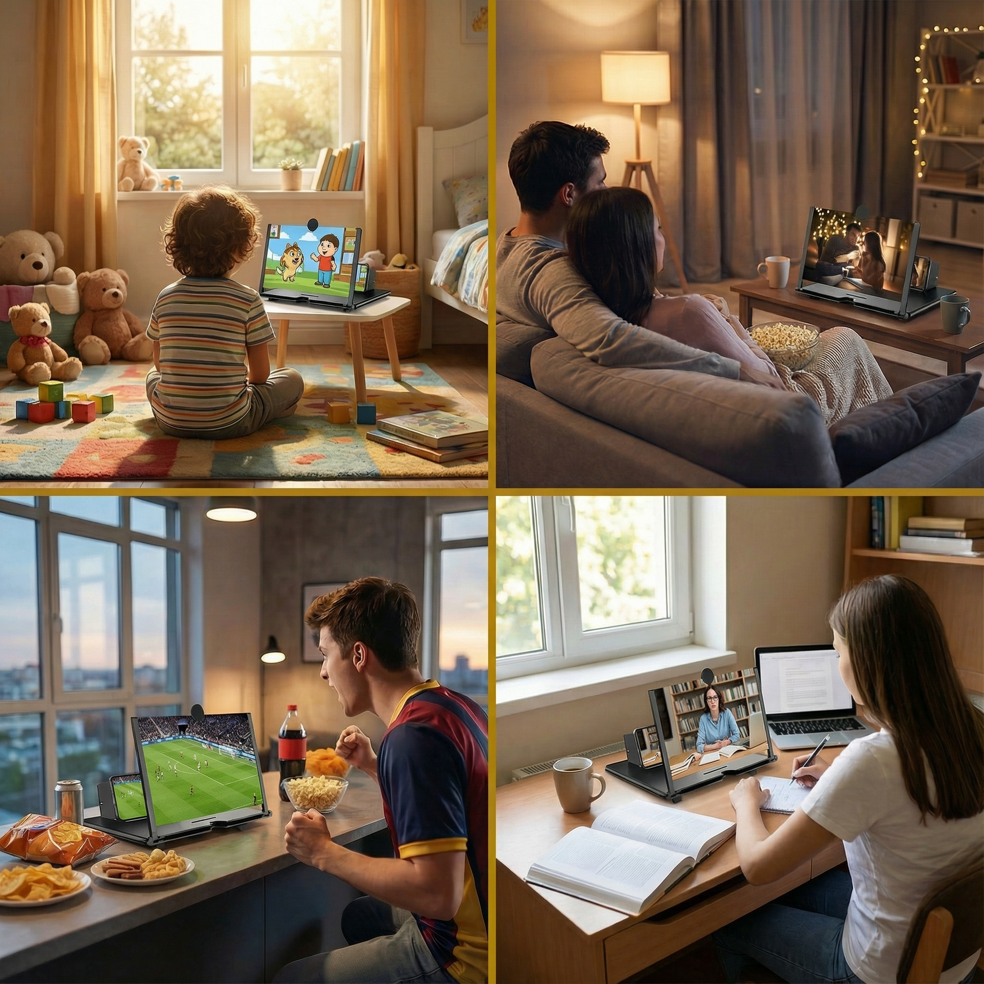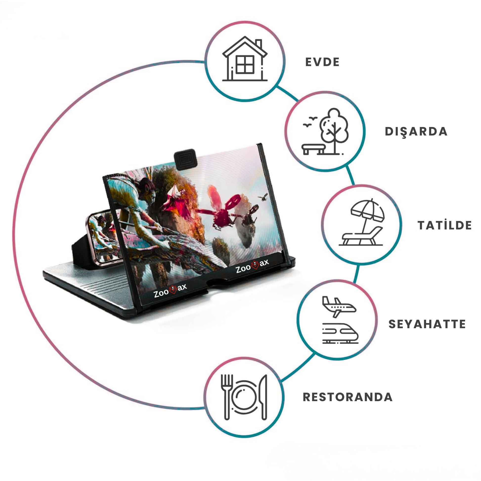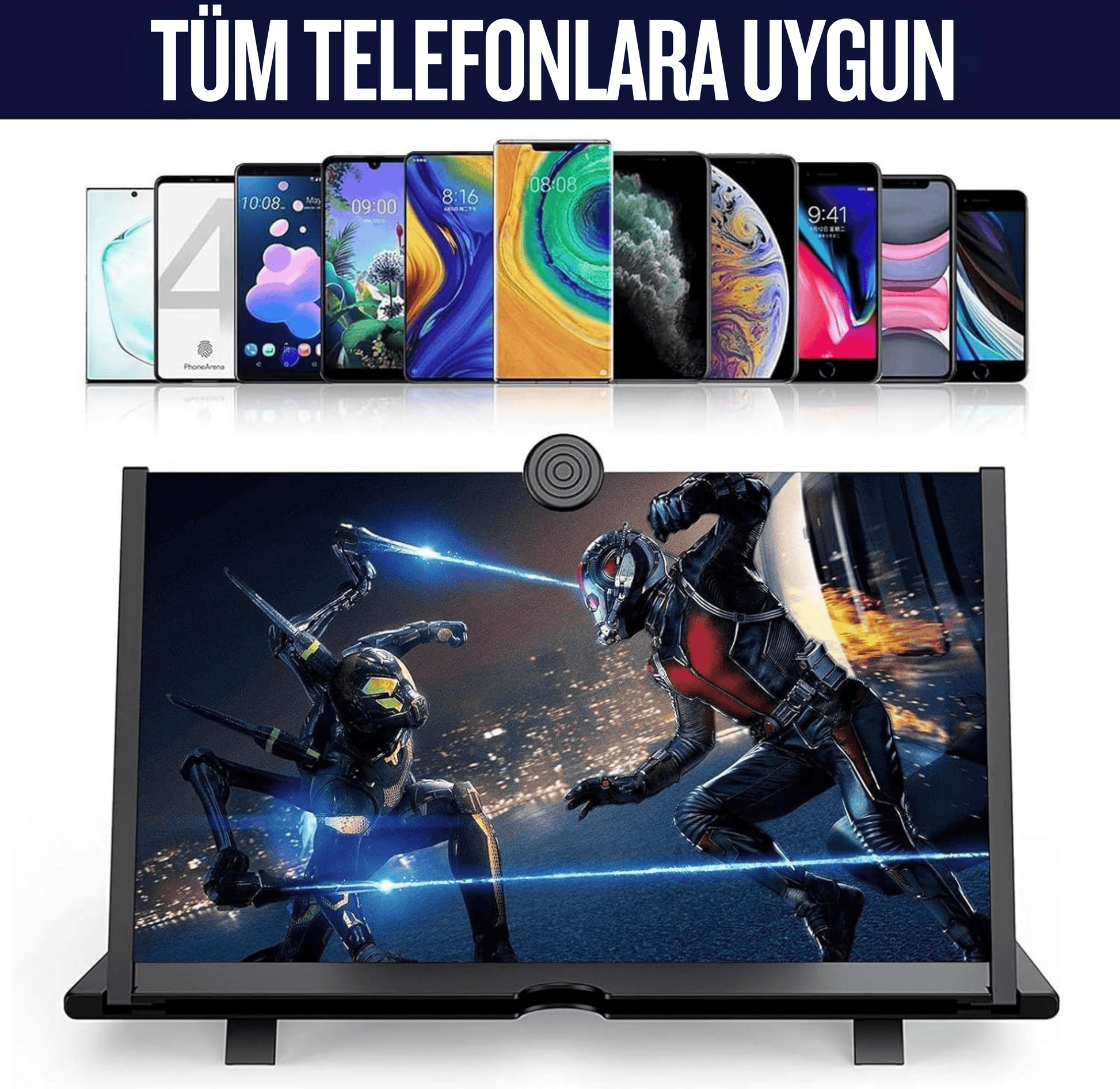 12 inç ekran büyüteciyle telefonun saniyeler içinde mini bir sinemaya dönüşsün.