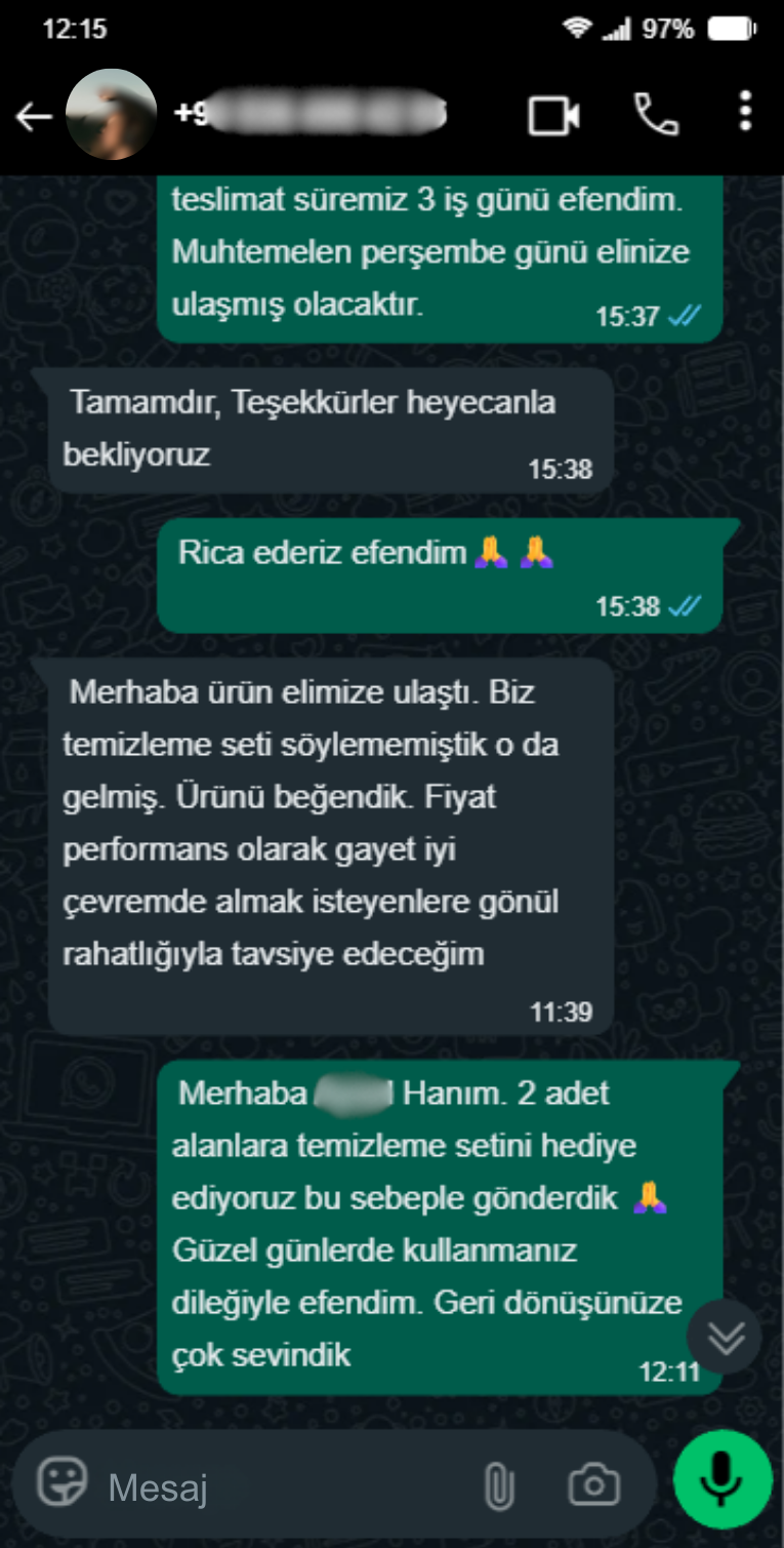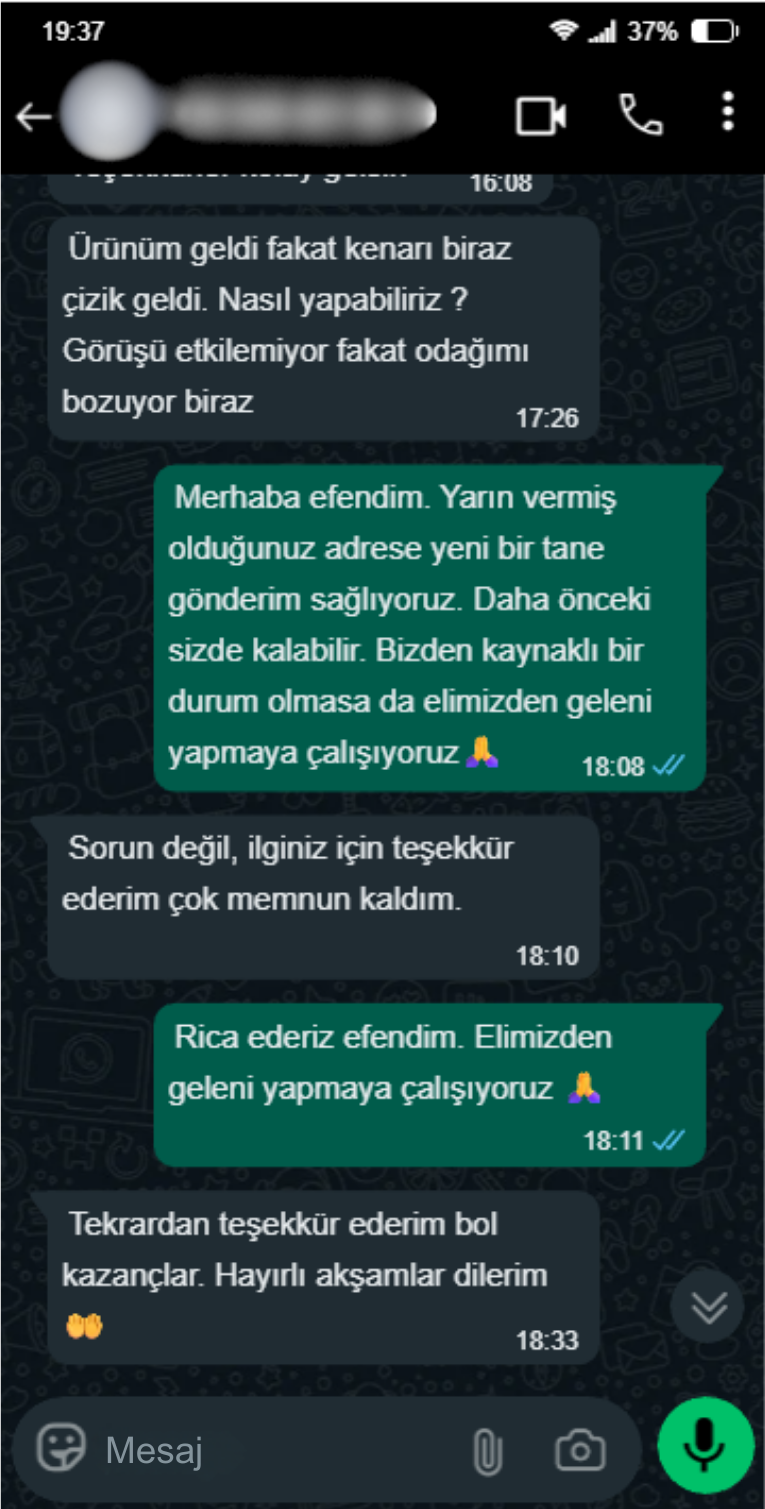 Sipariş öncesi ve sonrası WhatsApp, instagram üzerinden destek alabilirsiniz.